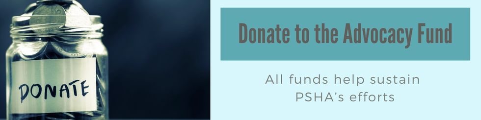 AdvocacyMake Your Voice Heard! PSHA is active at local, state, and federal levels in monitoring legislation and providing input. Use our take action center to contact your legislators about current issues relevant to practice. Take Action